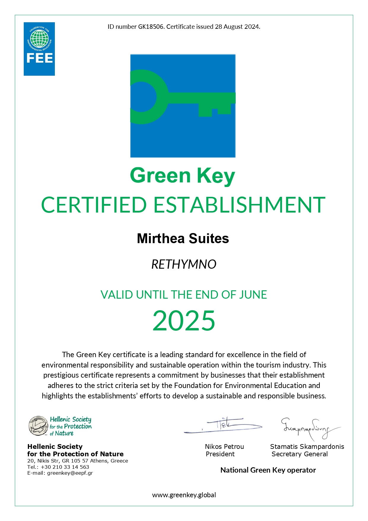 Go with the flow of time and experience the relaxing aura, the authentic Cretan hospitality and the luxury of holidays at Mirthea suites. Allow your senses to travel to the endless blue and the enchanting warm colours of the sunset. Enjoy the tranquility and sense of well-being offered by the rich natural beauty of the southern Cretan land. Feel the definition of comfort and elegance with your every move.